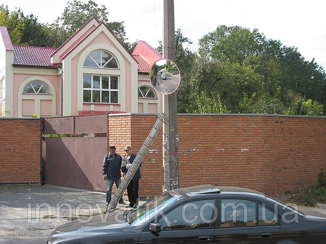 Дорожнє дзеркало УНІ 900 на виїзді з двору приватного будинку.